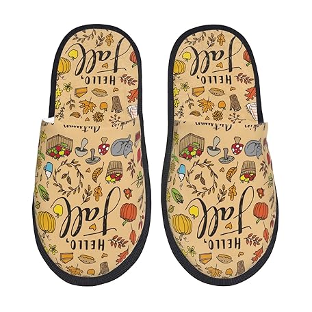 Thông tin sản phẩm Generic Indoor Slipper Hello Fall Autumn Leaves House Shoes Warm Cotton Slippers Plush Fleece Lined House Slippers For Women, Travel, Bedroom