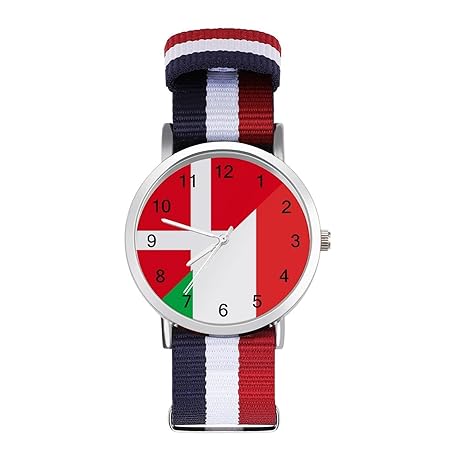 Generic Italy and Denmark Flag Unisex Wrist Watches Nylon Strap Analog Quartz Watch for Daily Wear