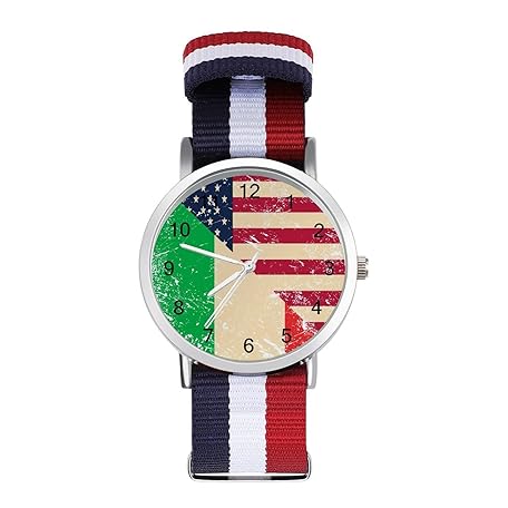 Generic U.S. and Italy Vintage Flag Unisex Wrist Watches Nylon Strap Analog Quartz Watch for Daily Wear