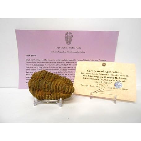 Genuine Huge Calymene Trilobite Fossil from The Anti-Atlas Region of Morocco, N.Africa with Free Acrylic Display Stand, Fact Sheet & COA Bundle