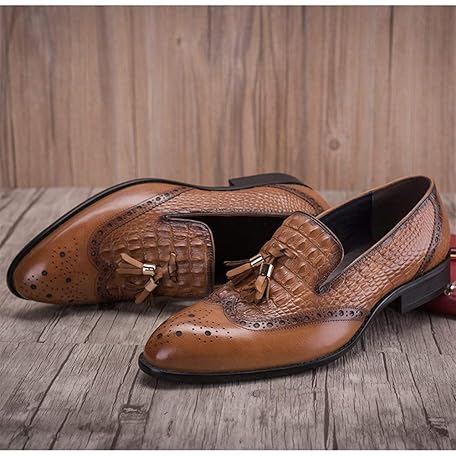 Sản phẩm Genuine Leather Carving Oxford for Men Casual Brogue Loafer Shoes Slip On Tasseled Burnished Pointed Toe đang được bán với giá ưu đãi là $187.3056 tại nước Anh.