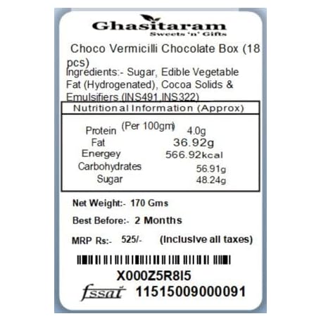 Sản phẩm Ghasitaram Gifts Christmas Gifts Chocolates - Choco Vermicilli Chocolate Box (18 pcs) đang được bán với giá ưu đãi là $7.3357 tại nước Anh.