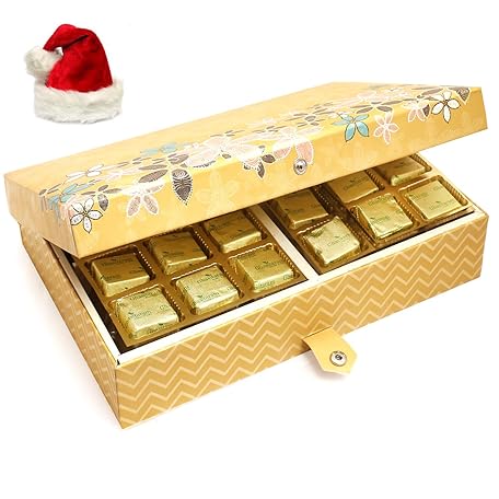 Ghasitaram Gifts Christmas Gifts Chocolates - Gold 4 Print 24 Pcs Roasted Almond Chocolate Box