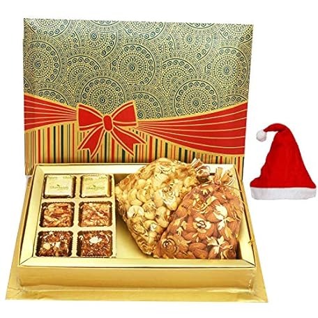 Sản phẩm Ghasitaram Gifts Christmas Gifts Christmas Chocolates 6 Pcs Assorted Choco Dryfruit Bites 150 GMS,Almonds 200 GMS, Cashews 200 GMS Pouches in Fancy Gift Box đang được bán với giá ưu đãi là $19.3039 tại nước Anh.
