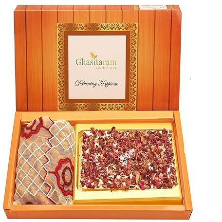 Ghasitaram Gifts Diwali Gifts Diwali Chocolates - Box of White Chocolate Bark and Almonds Pouch
