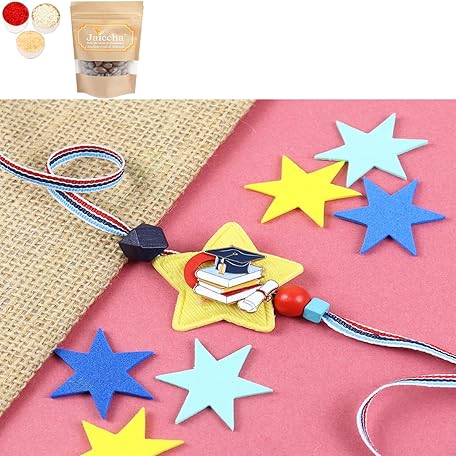 Ghasitaram Gifts Jaiccha Rakhi for Brother Rakhis Online KR24-087-Graduate Kids Rakhi with Chocolate Coated Almonds 100 GMS