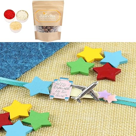 Ghasitaram Gifts Rakhis Gifts for Brothers Rakhis Online - KR25-103- Metal Aeroplane Kids Rakhi with Chocolate Coated Almonds 200 GMS