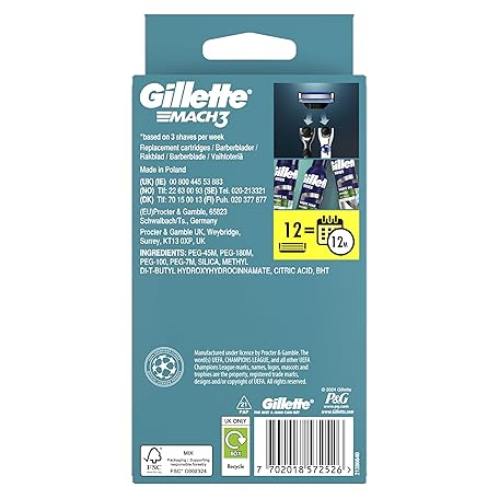 Sản phẩm Gillette Mach3 Razor Blades Men, 12 Razor Blade Refills, Compatible with Gillette Mach3 Razors for Men đang được bán với giá ưu đãi là $24.4923 tại nước Anh.