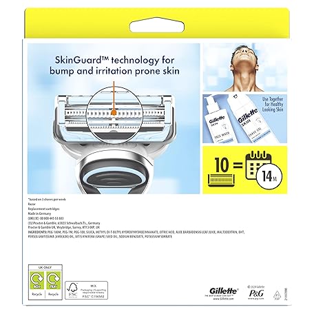 Sản phẩm Gillette SkinGuard Sensitive Razor for Men, 1 Men's Razor Handle with 10 Blade Refills, Gentle Shave for Sensitive Skin, Reduces Irritation and Bumps đang được bán với giá ưu đãi là $40.6788 tại nước Anh.