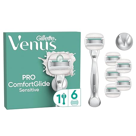 Sản phẩm Gillette Venus Pro ComfortGlide Sensitive Women’s Razor with a Touch of Aloe, 1 Refill Razor Cartridges, Reusable Metal Handle and Shower Holder đang được bán với giá ưu đãi là $23.3042 tại nước Anh.