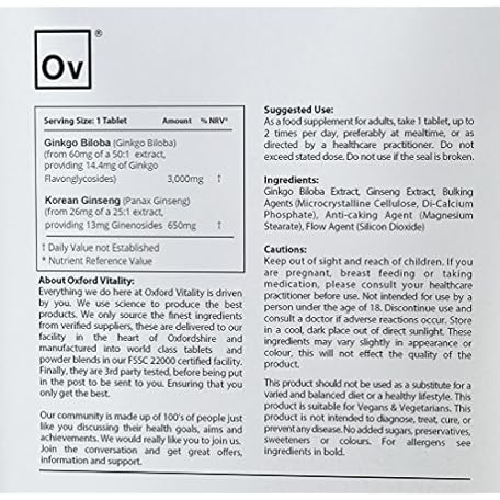 Sản phẩm Ginkgo Biloba 3000mg & Ginseng 650mg Tablets | Memory, Cognitive Functions & Sexual Health | Oxford Vitality đang được bán với giá ưu đãi là $14.3989 tại nước Anh.