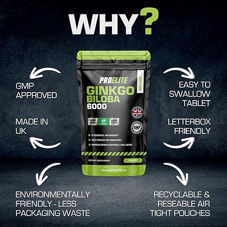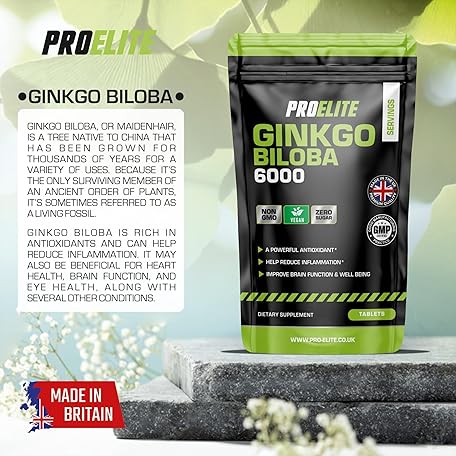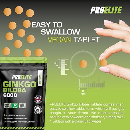 Sản phẩm Ginkgo Biloba 6000mg 180 High Strength Vegan Tablets - Ginkgo Biloba Leaf 50:1 Extract | Gluten Free, GMO Free - Made in UK by PROELITE đang được bán với giá ưu đãi là $10.0716 tại nước Anh.