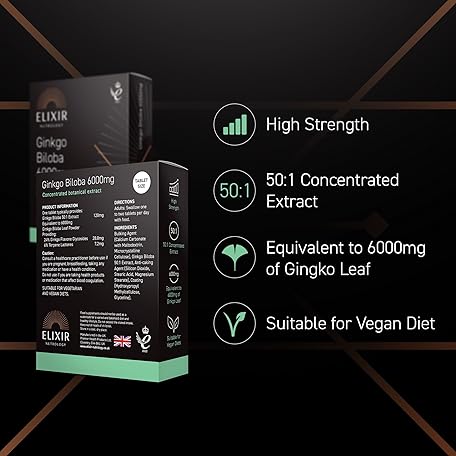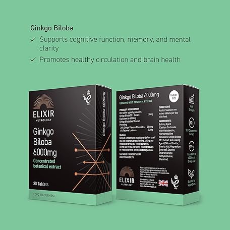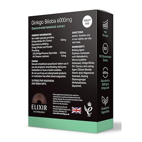 Thương hiệu ELIXIR NUTROLOGY là cái tên nổi tiếng được rất nhiều khách hàng trên thế giới chọn lựa. Với kiểu dáng đẹp mắt, sang trọng, sản phẩm Ginkgo Biloba 6000mg 30 Tablets - 50:1 Extract, Equivalent to 6000mg Leaf Powder, Rich in Ginkgo Flavone Glycosides & Terpene Lactones, Supports Well-Being. Made in The UK là sự lựa chọn hoàn hảo nếu bạn đang tìm mua một món cho riêng mình.