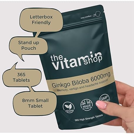 Sản phẩm Ginkgo Biloba 6000mg High Strength Tablets | 365 Tablets - One Year Supply | Memory Loss & Headaches | Grip Sealed Pouch | Same Day Secure Dispatch đang được bán với giá ưu đãi là $15.26 tại nước Anh.