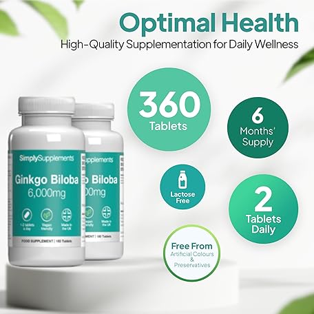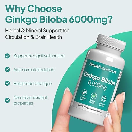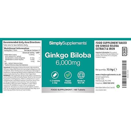 Thương hiệu Simply Supplements là cái tên nổi tiếng được rất nhiều khách hàng trên thế giới chọn lựa. Với kiểu dáng đẹp mắt, sang trọng, sản phẩm Ginkgo Biloba 6,000mg | with Added Iron | Supports Cognitive Function & Circulation | Vegan & Vegetarian Friendly | 360 Tablets = 6 Months’ Supply | Manufactured in The UK là sự lựa chọn hoàn hảo nếu bạn đang tìm mua một món cho riêng mình.