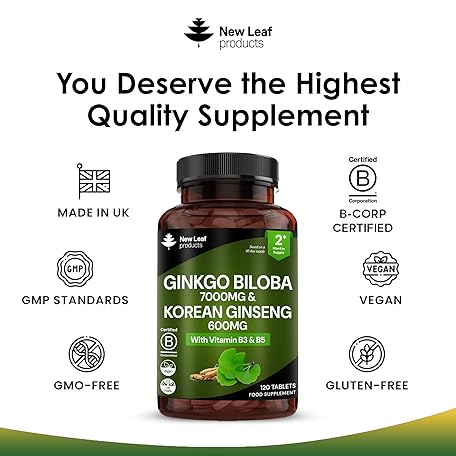 Thương hiệu NEW LEAF PRODUCTS là cái tên nổi tiếng được rất nhiều khách hàng trên thế giới chọn lựa. Với kiểu dáng đẹp mắt, sang trọng, sản phẩm Ginkgo Biloba and Korean Ginseng Tablets - 7000mg Ginkgo Biloba Herbal Supplements & 600mg Panax Ginseng High Strength Extract - Enriched with Vitamin B3 & B5-120 Vegan Tablets là sự lựa chọn hoàn hảo nếu bạn đang tìm mua một món cho riêng mình.