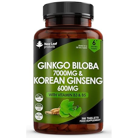 Sản phẩm Ginkgo Biloba and Korean Ginseng Tablets - 7000mg Ginkgo Biloba Herbal Supplements & 600mg Panax Ginseng High Strength Ginseng Extract - Enriched with Vitamin B3 & B5-360 Vegan Tablets đang được bán với giá ưu đãi là $28.7433 tại nước Anh.