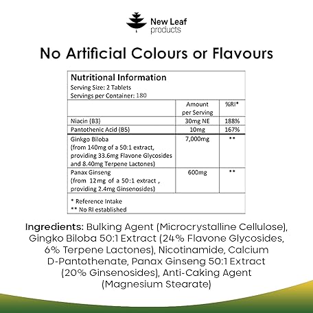 Thương hiệu NEW LEAF PRODUCTS là cái tên nổi tiếng được rất nhiều khách hàng trên thế giới chọn lựa. Với kiểu dáng đẹp mắt, sang trọng, sản phẩm Ginkgo Biloba and Korean Ginseng Tablets - 7000mg Ginkgo Biloba Herbal Supplements & 600mg Panax Ginseng High Strength Ginseng Extract - Enriched with Vitamin B3 & B5-360 Vegan Tablets là sự lựa chọn hoàn hảo nếu bạn đang tìm mua một món cho riêng mình.