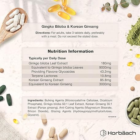 Sản phẩm Ginkgo Biloba and Korean Ginseng Tablets | High Strength | Ginkgo 9000mg & Ginseng Root 3000mg | 180 Vegan Tablets | by Horbaach đang được bán với giá ưu đãi là $12.9601 tại nước Anh.