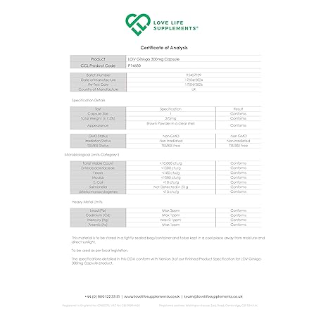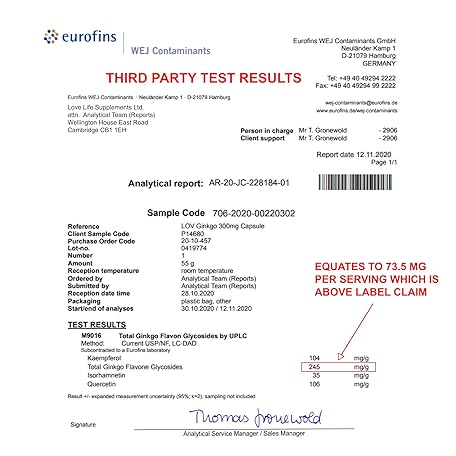 Thông tin sản phẩm Ginkgo Biloba Capsules High Strength | 15,000mg 50:1 Extract (from Ginkgo Biloba Leaves) - 60 Servings | 24% Flavone Glycosides (3rd Party Tested) | Pure Ginkgo (No Fillers) | Love Life Supplements