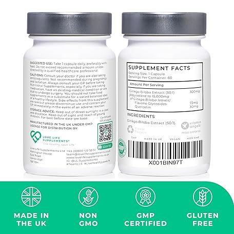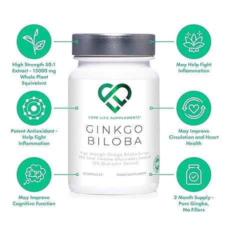 Sản phẩm Ginkgo Biloba Capsules High Strength | 15,000mg 50:1 Extract (from Ginkgo Biloba Leaves) - 60 Servings | 24% Flavone Glycosides (3rd Party Tested) | Pure Ginkgo (No Fillers) | Love Life Supplements đang được bán với giá ưu đãi là $38.8476 tại nước Anh.