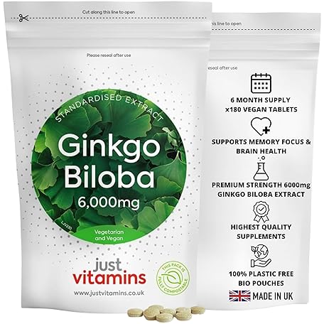 Ginkgo Biloba High Strength 6000mg | 180 Vegan Tablets | Supports Memory, Focus & Circulation | Brain Health & Cognitive Function | Non-GMO | UK Made - Just Vitamins