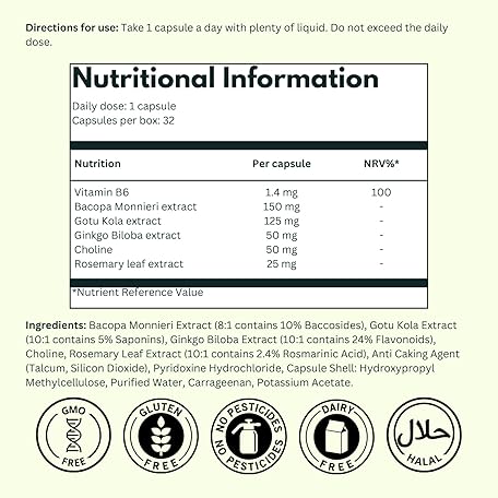 Thông tin sản phẩm Ginkgo Biloba High Strength by NutraKing (32 Day Supply) - Brain Supplement for Focus with Ginkgo Biloba (500mg - 24% Flavonoids), Bacopa Monnieri (1200mg), Choline (50mg), Rosemary Leaf (250mg)