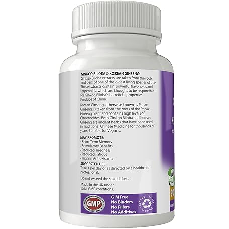 Sản phẩm Ginkgo Biloba & Korean Ginseng for Improved Cognition and Healthy Ageing | 3000mg/1000mg x 90 Tablets | 100% Natural | Gluten Free | GM Free | Vegan đang được bán với giá ưu đãi là $25.2989 tại nước Anh.