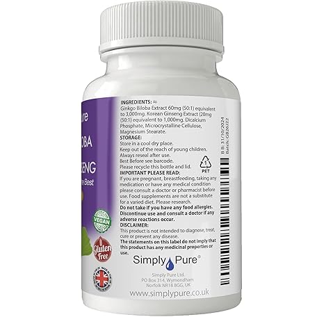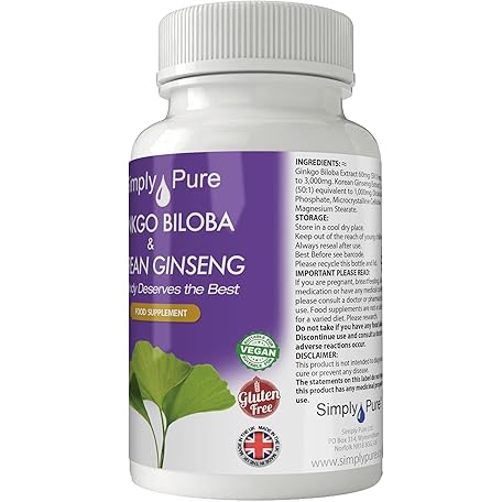 Thương hiệu Simply Pure là cái tên nổi tiếng được rất nhiều khách hàng trên thế giới chọn lựa. Với kiểu dáng đẹp mắt, sang trọng, sản phẩm Ginkgo Biloba & Korean Ginseng for Improved Cognition and Healthy Ageing | 3000mg/1000mg x 90 Tablets | 100% Natural | Gluten Free | GM Free | Vegan là sự lựa chọn hoàn hảo nếu bạn đang tìm mua một món cho riêng mình.