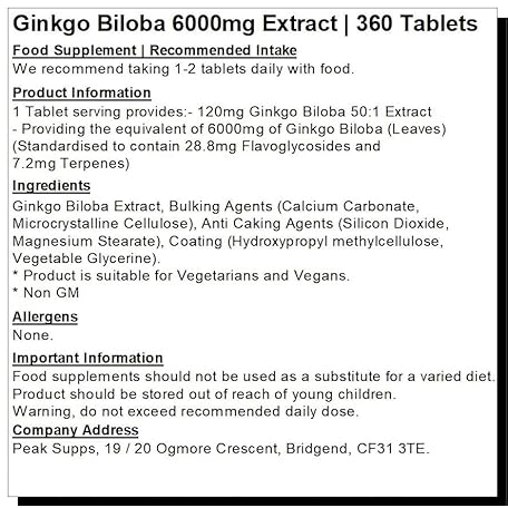 Sản phẩm Ginkgo Biloba Tablets - 360 Pills - 6000mg Extract đang được bán với giá ưu đãi là $18.7262 tại nước Anh.