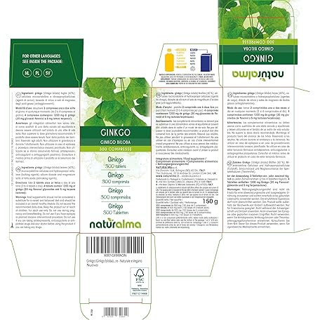 Sản phẩm Ginkgo (Ginkgo biloba) Leaves Naturalma - 150 g - 300 Tablets - Food Supplement - Natural and Vegan đang được bán với giá ưu đãi là $21.6038 tại nước Anh.