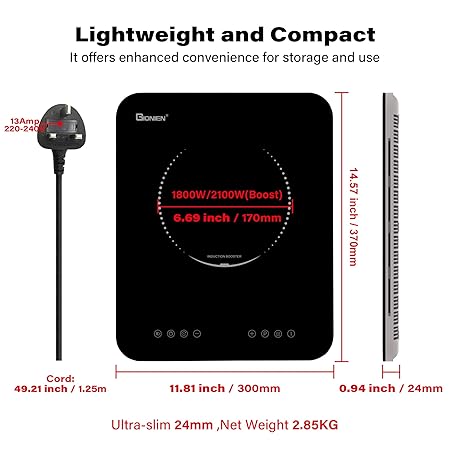 Thông tin sản phẩm GIONIEN Portable Induction Hob 2100W,Single Hot Plate Countertop Burner,Sensor Touch Electric Cooker,10 Power,24mm Ultra Thin,170mm Heating Coils,Child Safety Lock,Timer,Black