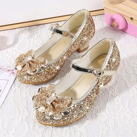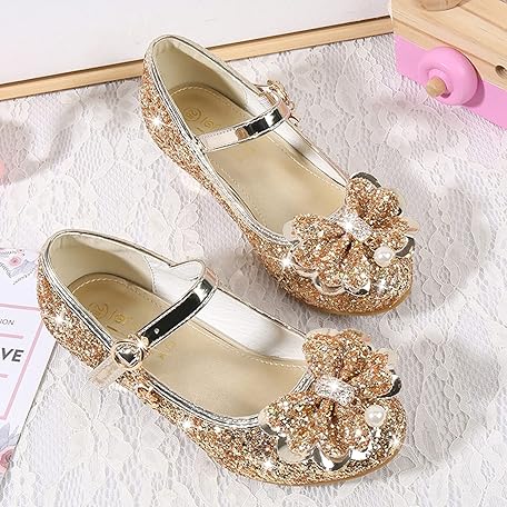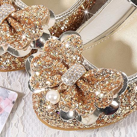 Thông tin sản phẩm Girls' Crystal Bow Leather Shoes, Sequin Party Footwear for Flower Girls, Bridesmaid Wedding Birthday Dress, Parties, and Ball Gowns