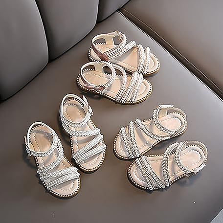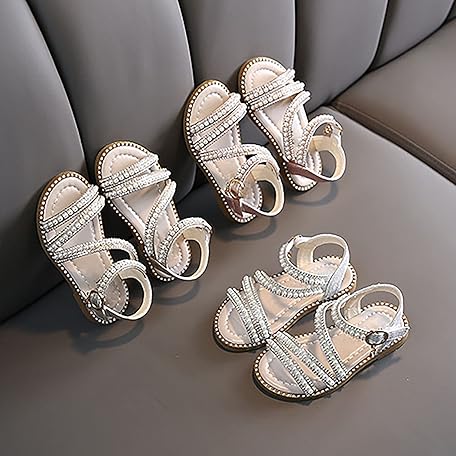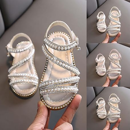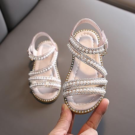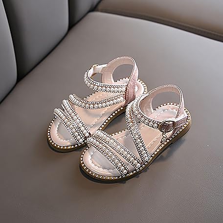Girls' Pearl Beaded Toe-Post Sandals, Girls' rhinestone Flat pumps Leather Shoes for Weddings as Bridesmaid, Flower Girl, Birthday Parties, and 𝗕all Gowns