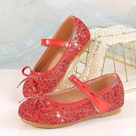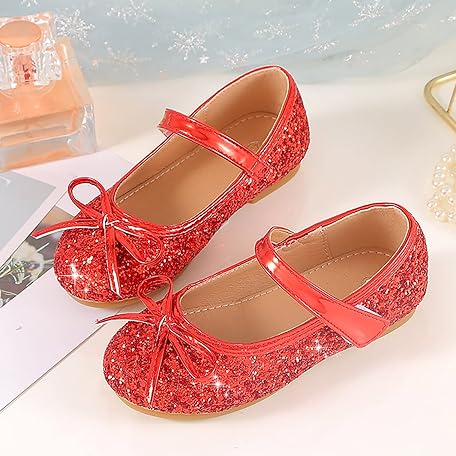 Thông tin sản phẩm Girls' Sequined Bowknot Flat, Sparkly Crystal Leather Shoes for Girls, for Weddings as Bridesmaid, Flower Girl, Birthday Parties, and 𝗕all Gowns (Red, 13 Little Child)