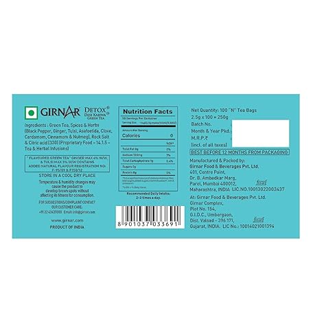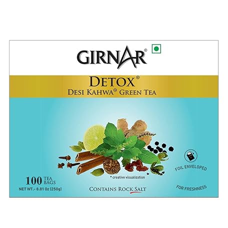 Sản phẩm Girnar Detox Green Tea (Desi Kahwa) (100 Tea Bags) đang được bán với giá ưu đãi là $65.7706 tại nước Anh.