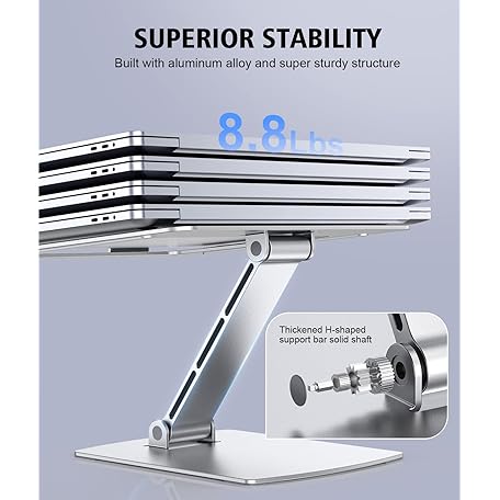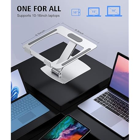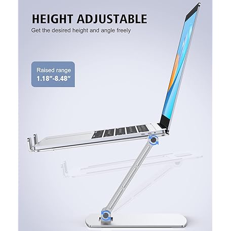 Thông tin sản phẩm Glangeh Laptop Stand Adjustable Height, Ergonomic Air-Ventilated Laptop Riser Holder for Desk, Aluminum Foldable Laptop Cooling Pads Computer Stand Compatible with MacBook Air Pro (10-16")-Silver