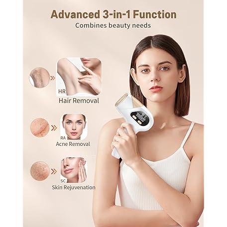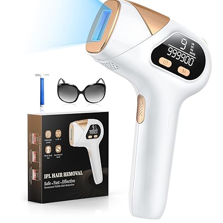 Glattol IPL Laser Hair Removal - 3-in-1 & Long Lasting, Effective Hair Removal Device with 9 Levels and 999,900 Light Pulses, 2 Flash Modes for at-Home Full Body Treatment, for Women and Men