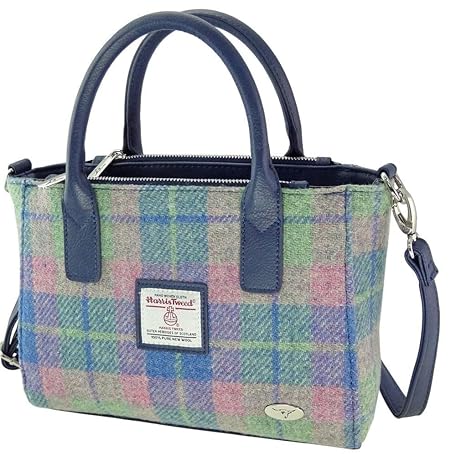 • Glen Appin Harris Tweed Tote Handbag – LB1228 Brora With Detachable Shoulder Stap (Col135 Blue and Pink)
