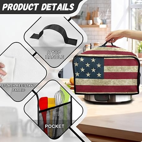 Sản phẩm GLENLCWE Vintage American Flag Slow Cooker Cover with Handle and Mesh Pocket,Patriotic Dust Cover Oval Slow Cooker Cover Crock Pot Dust Protection đang được bán với giá ưu đãi là $31.4356 tại nước Anh.