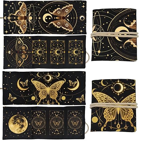 GLOBLELAND 2Pcs Moths Butterflies Tarot Card Holder with Layout Pattern Moon Phases Polyester Tarot Magic Divination Large Storage Pouch Accessories for Playing Cards and Tarots