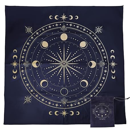 GLOBLELAND Eclipse Divination Tarot Cloth and Bag 30in Moon and Star Thick Velvet Fabric Tablecloth Divination Circle Tarot Card Bag for Divination Tarot Card Wiccan Room Bar Home Wall