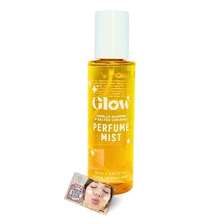 Glow Perfume Mist Spray 250ml - Long-Lasting Body & Hair Fragrance, Premium Scented Body Mist Sprays for Women, Made in the UK - Includes ShopZee Skincare eBook (Vanilla Almond & Salted Caramel)