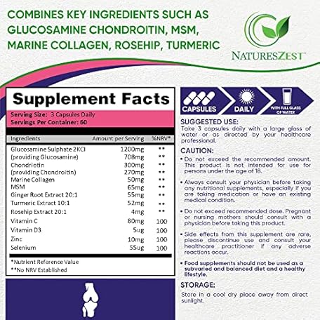 Thương hiệu Natures Zest là cái tên nổi tiếng được rất nhiều khách hàng trên thế giới chọn lựa. Với kiểu dáng đẹp mắt, sang trọng, sản phẩm Glucosamine and Chondroitin High Strength -180 Caps- Joint Care Supplement for Men & Women | MSM Supplements with Vitamin C, Rosehip, Turmeric Curcumin & Marine Collagen - 4 Month Supply là sự lựa chọn hoàn hảo nếu bạn đang tìm mua một món cho riêng mình.