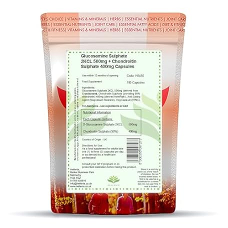 Sản phẩm Glucosamine and Chondroitin High Strength |180 Capsules | Fast Release Formula | Premium Glucosamine Supplement | Joint Care Supplement Made in The UK by Hellenia đang được bán với giá ưu đãi là $24.5904 tại nước Anh.