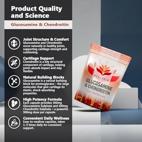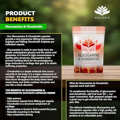 Thương hiệu Hellenia là cái tên nổi tiếng được rất nhiều khách hàng trên thế giới chọn lựa. Với kiểu dáng đẹp mắt, sang trọng, sản phẩm Glucosamine and Chondroitin High Strength |180 Capsules | Fast Release Formula | Premium Glucosamine Supplement | Joint Care Supplement Made in The UK by Hellenia là sự lựa chọn hoàn hảo nếu bạn đang tìm mua một món cho riêng mình.
