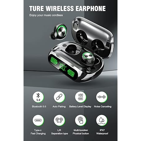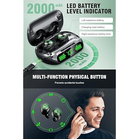 Sản phẩm GNMN Wireless Earbuds Bluetooth Headphones,LED Power Display/50H Play Time/Button Control/IP7 Waterproof TWS Earphones in-Ear w/HD Mic Hi-Fi Stereo Sound Headsets for Sports đang được bán với giá ưu đãi là $41.3982 tại nước Anh.