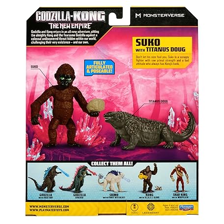 Thông tin sản phẩm Godzilla x Kong: The New Empire, 3.5-Inch Suko and Titanus Doug Action Figure Toys, Iconic Collectable Movie Characters, Includes Signature Handheld Boulder, Toy Suitable for Ages 4 Years+