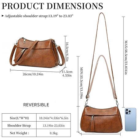 Thông tin sản phẩm GOIACII Shoulder Bag for Women Leather Purse Crossbody Bag with Adjustable Strap, Brown, Classic
