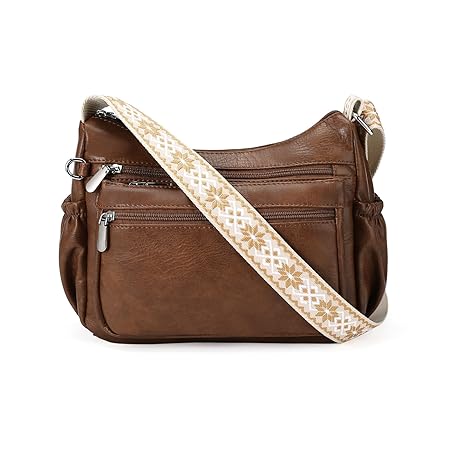 GOIACII Shoulder Bag for Women Leather Purse Crossbody Bag with Adjustable Strap, C02 Brown, M
